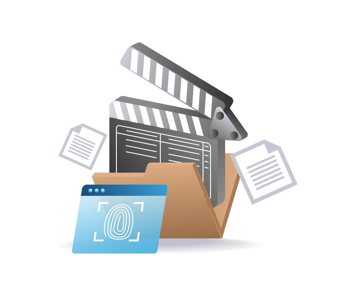 digital folder containing filmmaker data and movie editing files Pro Vector