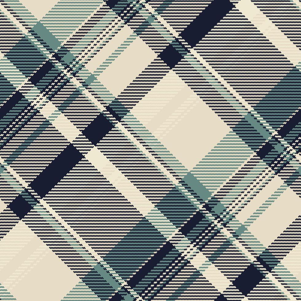 Elegant diagonal plaid pattern in muted teal, beige, and navy. Perfect for textile design, apparel, or website backgrounds. This sophisticated design evokes feelings of warmth and tradition. Pro Vector