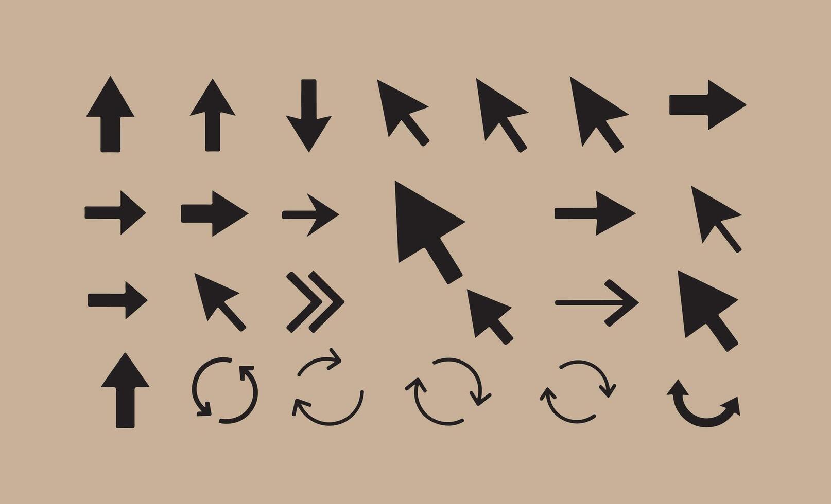 Collection of diverse arrow and cursor icons on a textured background vector