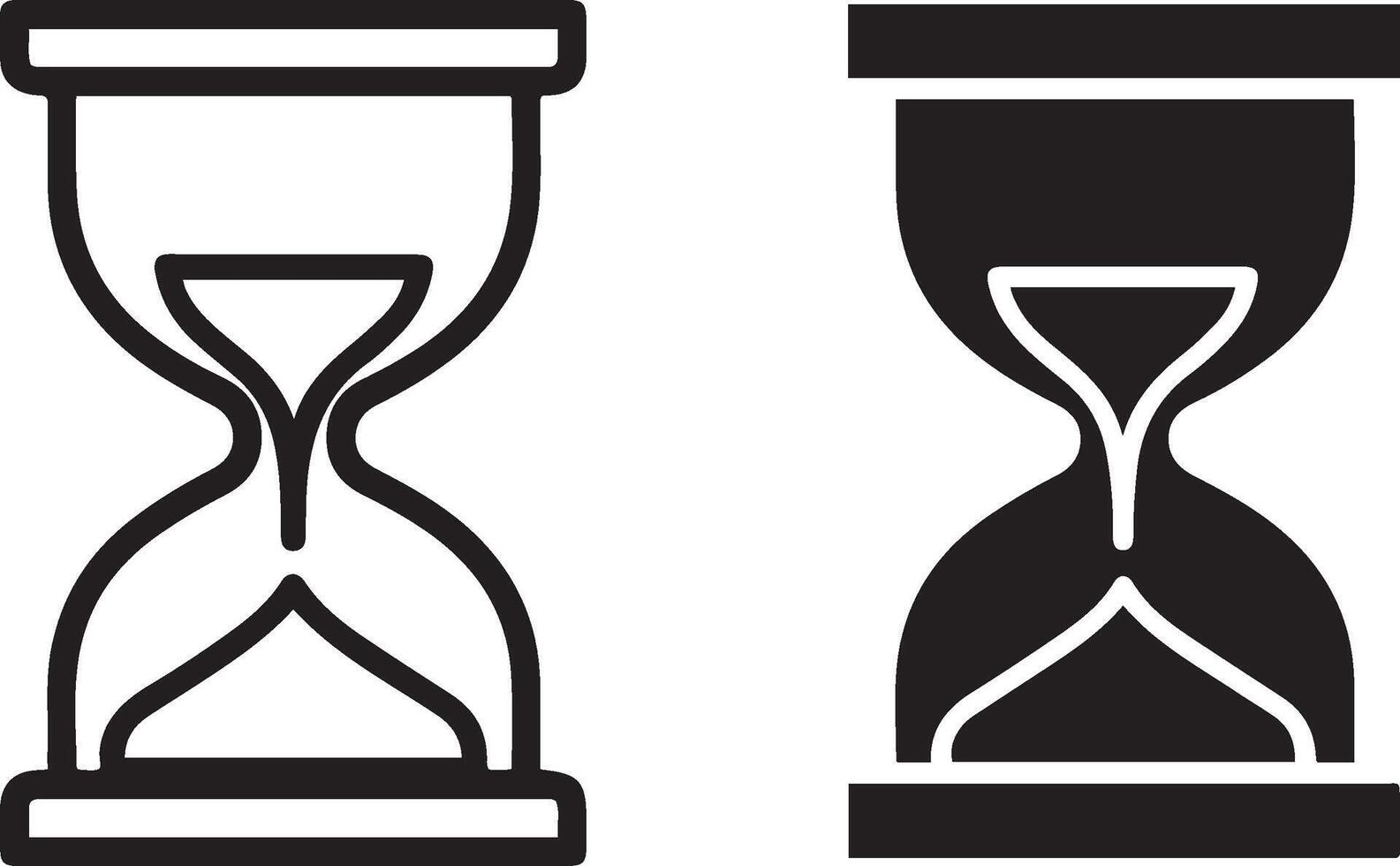 Two hourglass icons showing time passing symbolizing urgency and countdown Pro Vector