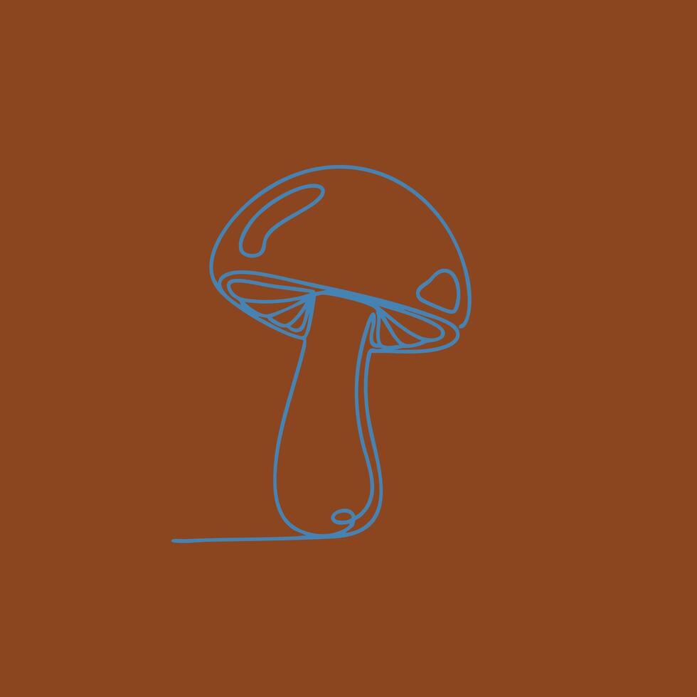 Minimalist Line Drawing of a Mushroom with a Rounded Cap and Stalk on a Solid Brown Pro Vector