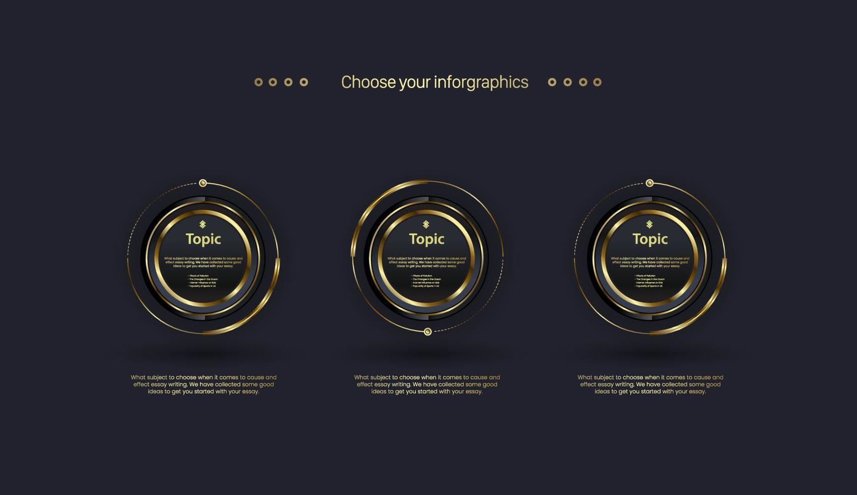 Steps of Three buttons Timeline infographics template and with a modern cirxcles luxury elements. Premium levels Business concept chart in work flow and steps Pro Vector