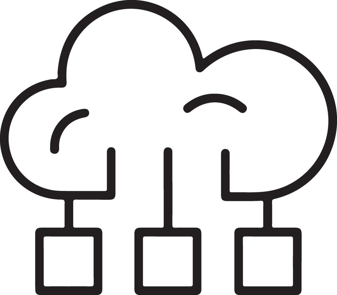 Simple line art icon representing cloud computing data storage and network connection Pro Vector
