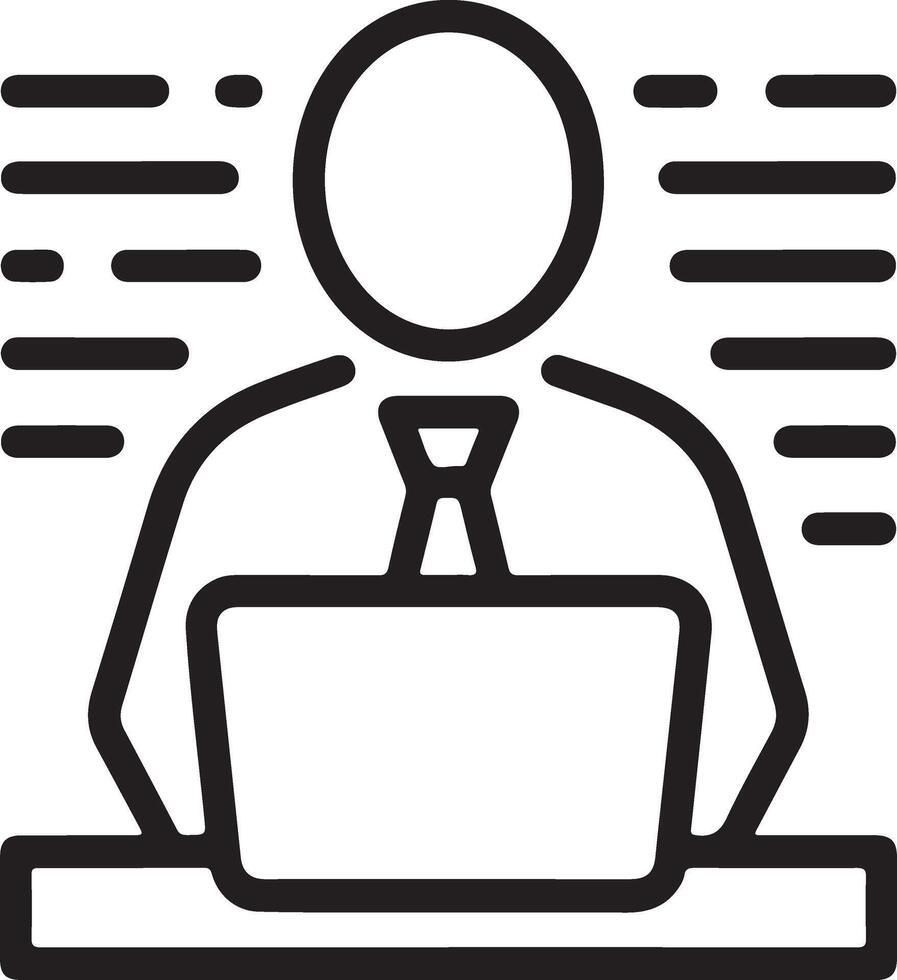 Simple line icon of a person working on a laptop computer at a desk Pro Vector
