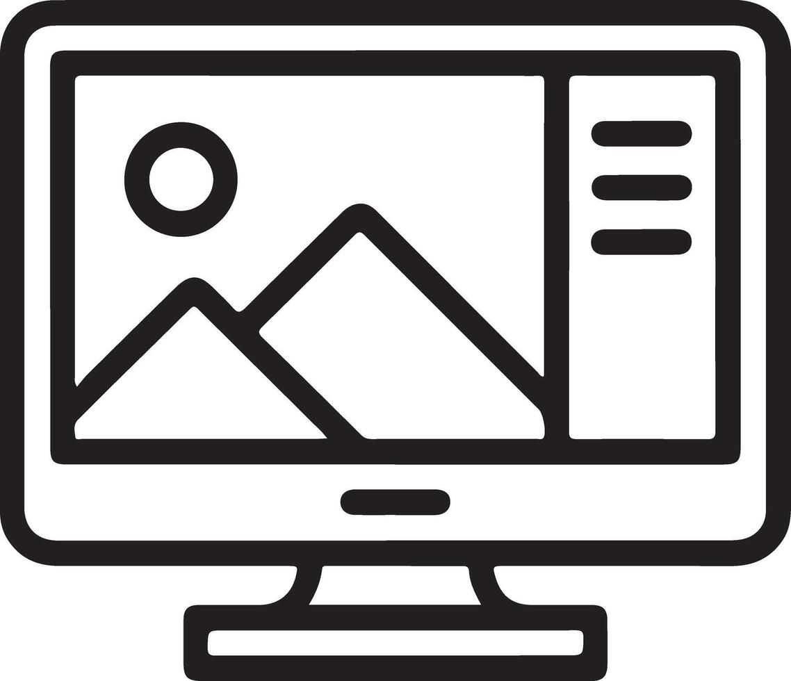 Computer monitor displaying a landscape image with editing tools on the side Pro Vector