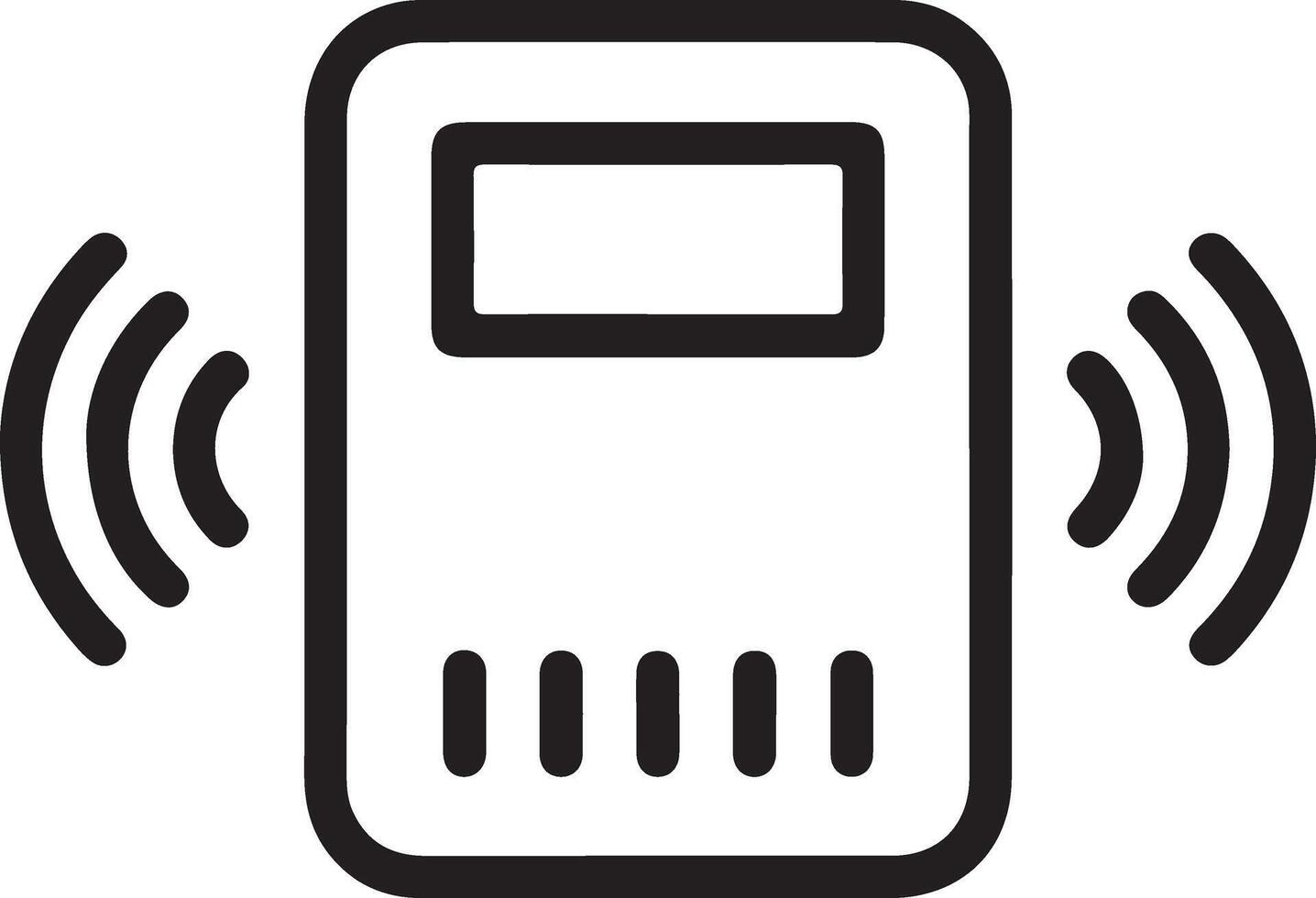 Simple outline icon of a smart device emitting wireless signals or sound waves Pro Vector