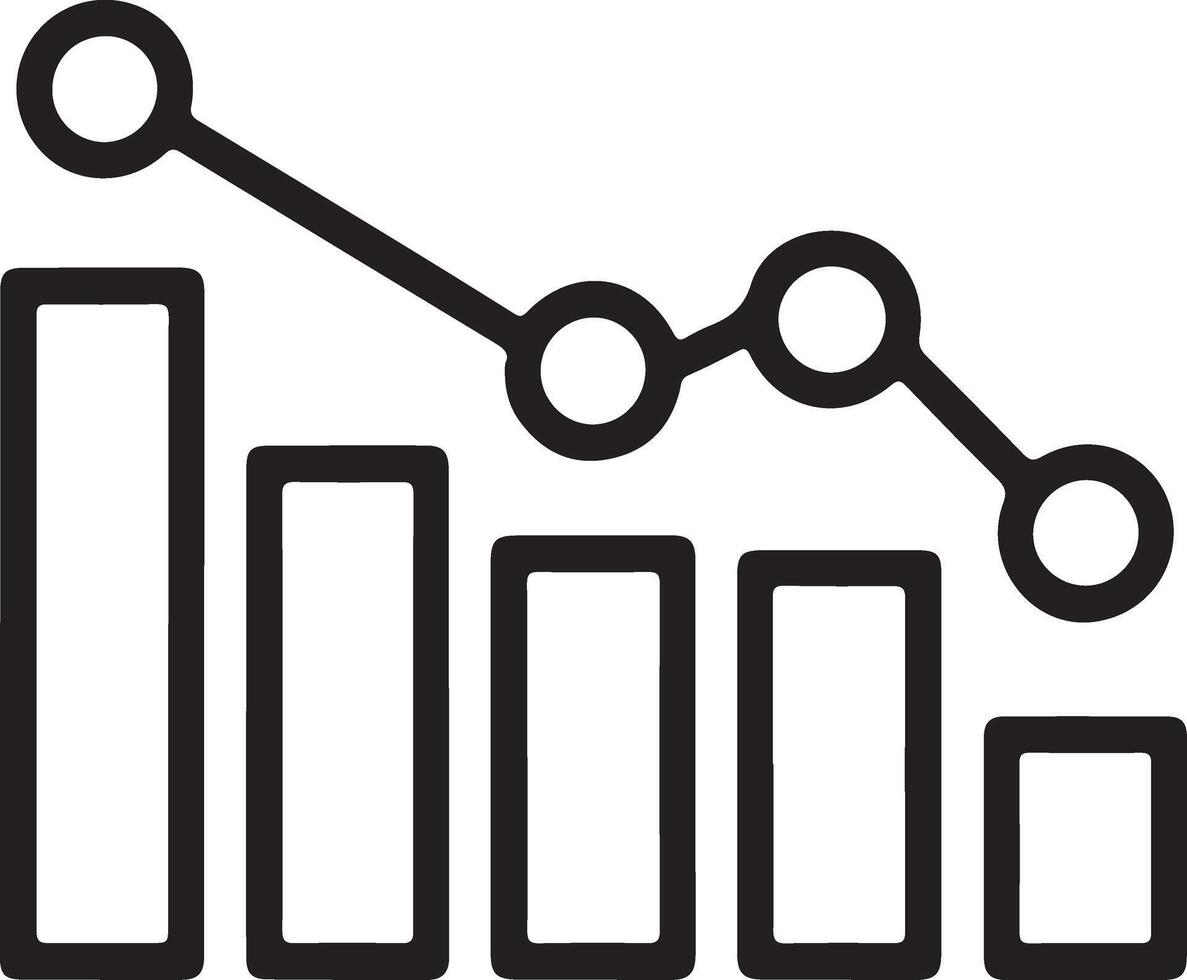 Simple line graph and bar chart showing a downward trend and decline Pro Vector