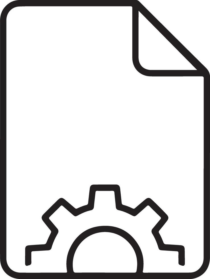 Simple outline icon representing a document or file with a gear mechanism below it Pro Vector