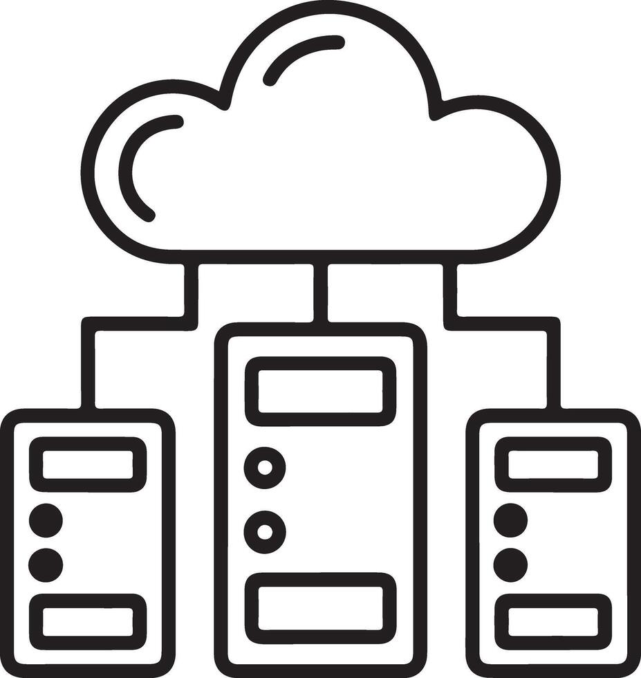 Cloud computing network diagram with servers and data storage illustration Pro Vector