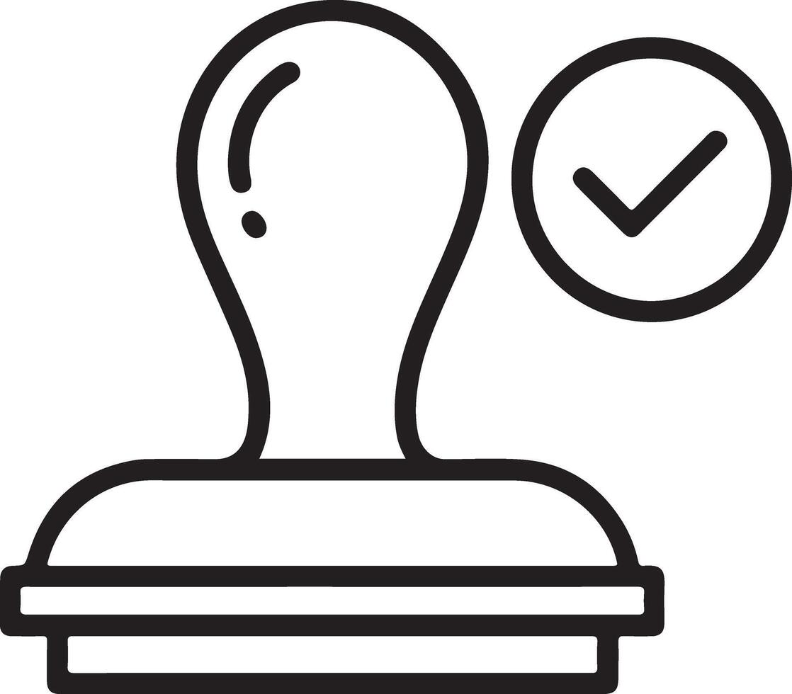 Simple outline icon of a stamp with a check mark symbolizing approval Pro Vector