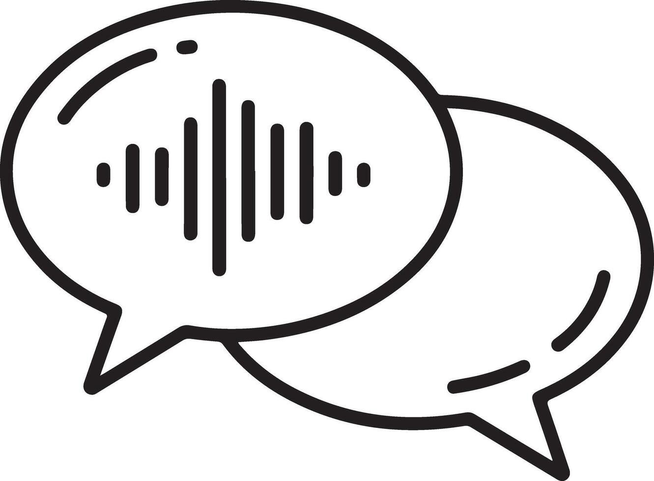 Two stylized speech bubbles with a sound wave graphic inside one representing communication and audio Pro Vector