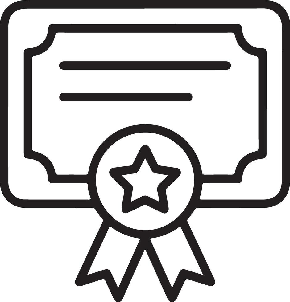 Simple line art icon of a certificate with a star and ribbon symbolizing achievement and recognition Pro Vector