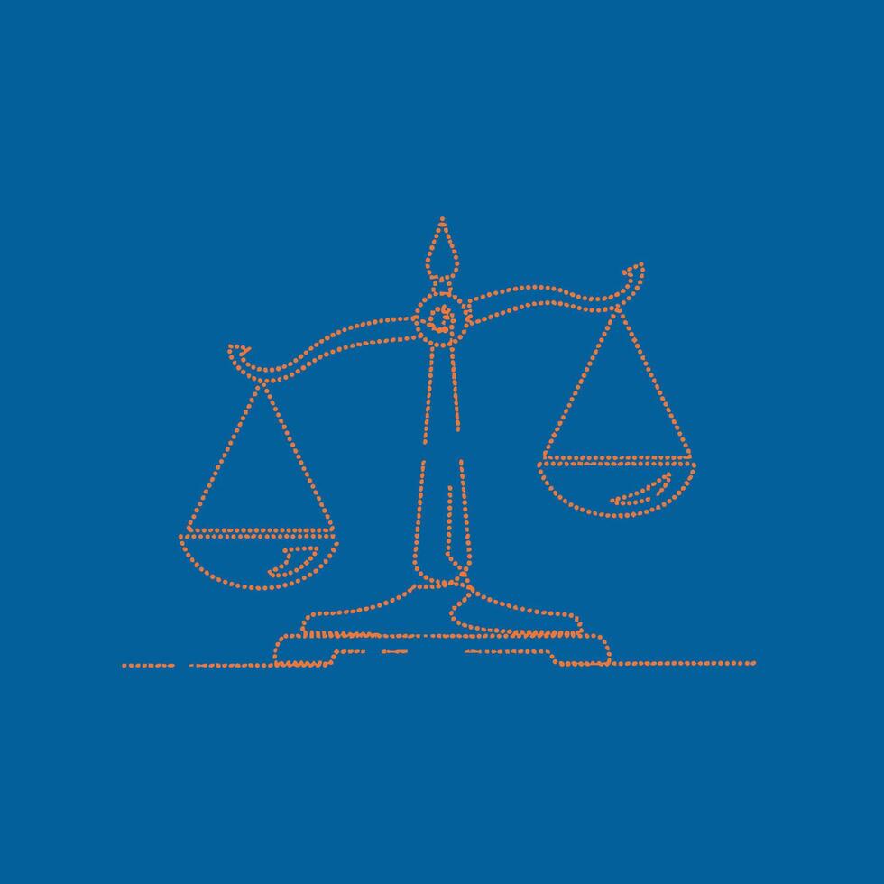 Elegant balance scale symbol representing justice, fairness, and equality with a minimalist dotted line design on a solid Pro Vector
