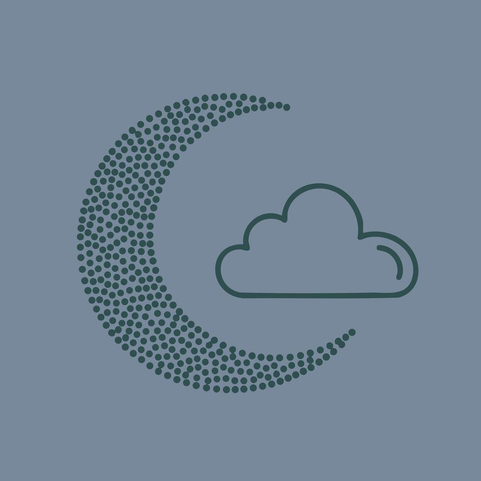 Minimalist depiction of a crescent moon and a single cloud on a muted emphasizing night sky elements Pro Vector