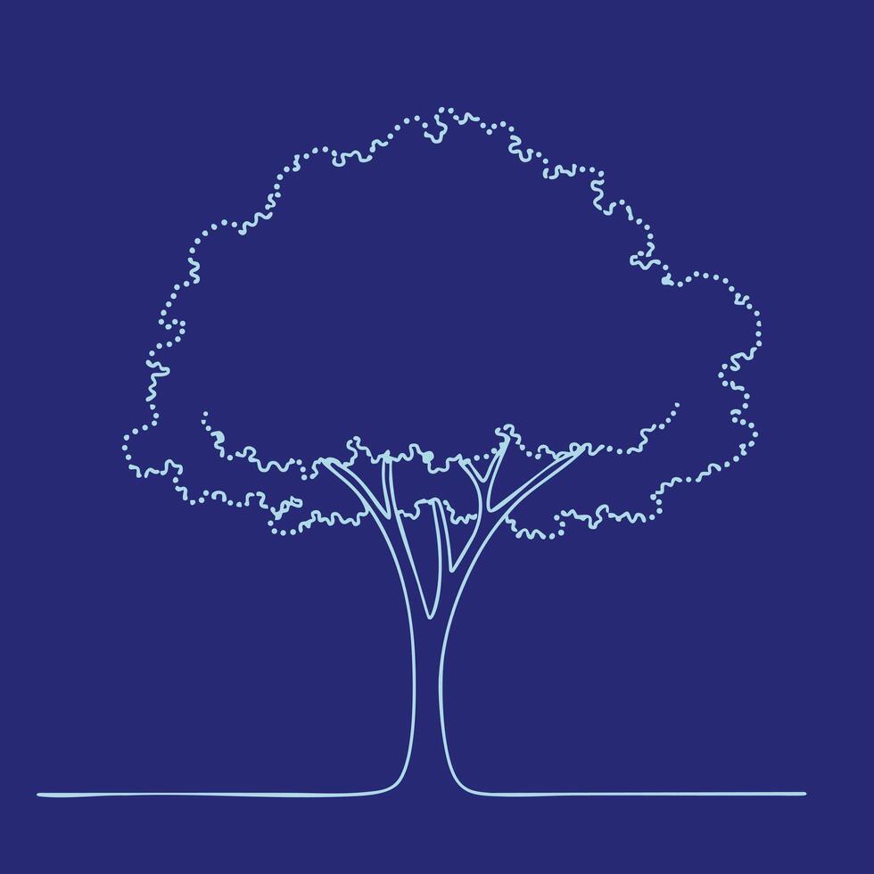 Minimalist Line Drawing of a Tree with a Full Canopy and Elegant Trunk on a Dark vector