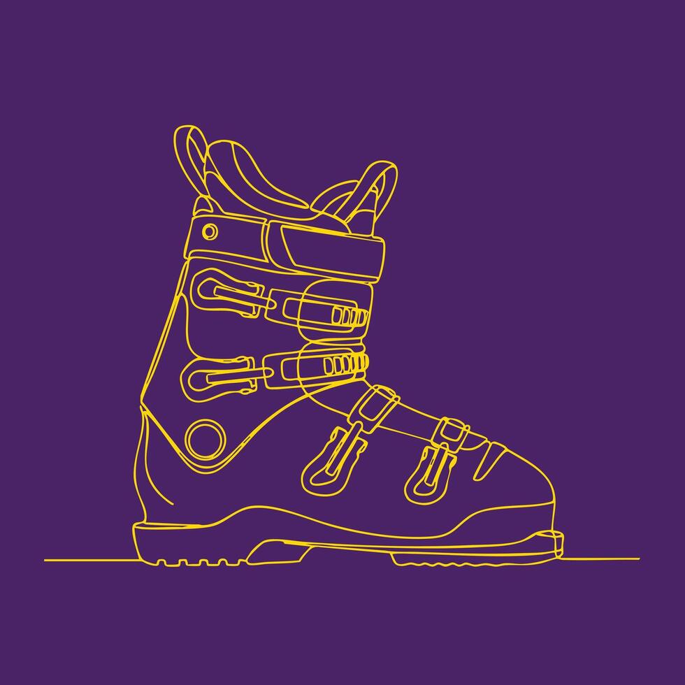 Single Line Drawing of a Hiking Boot with Multiple Straps and Treads on a Purple Free Vector