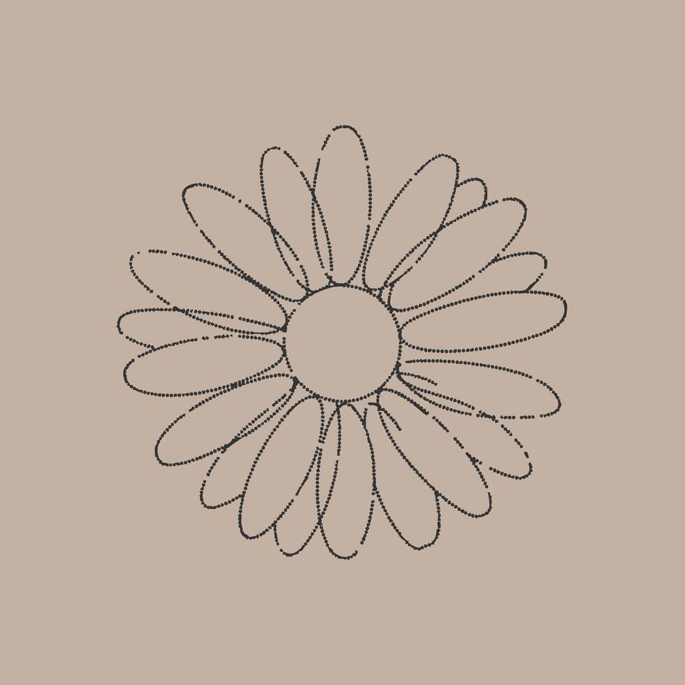 Abstract floral pattern composed of dotted lines forming a circular flower shape with elongated petals on a neutral vector