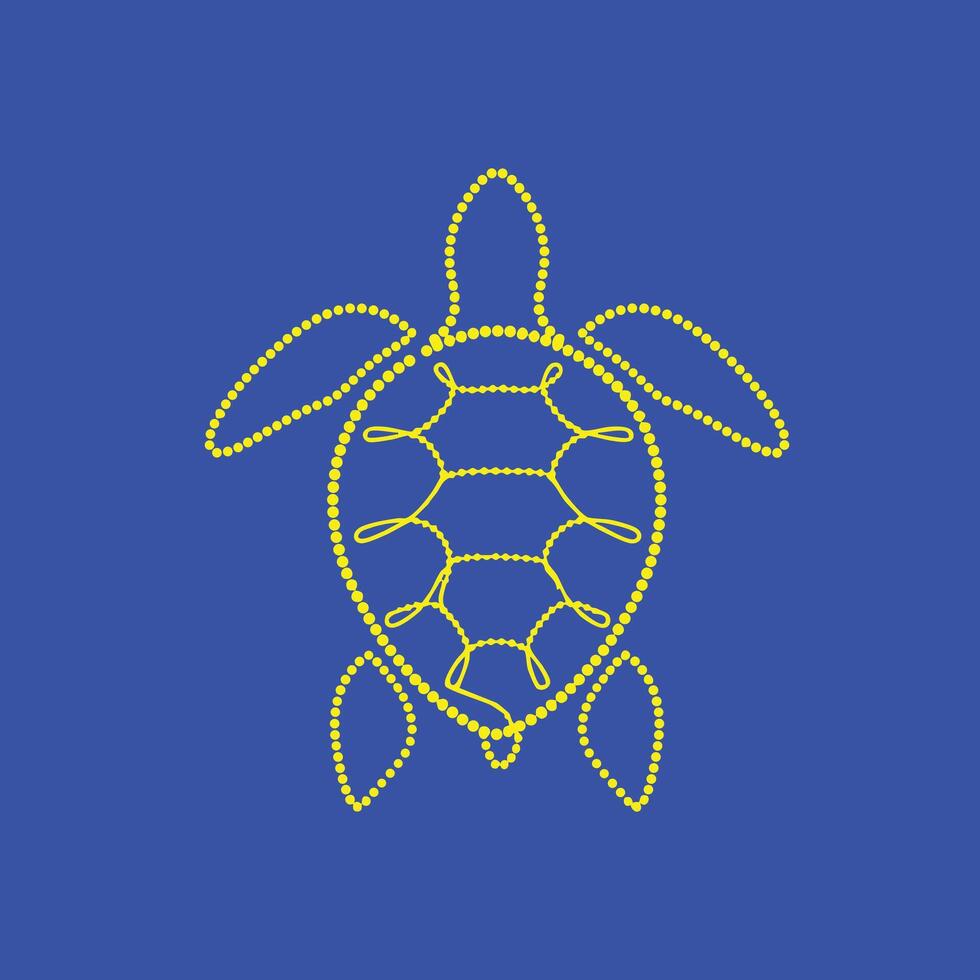Stylized turtle outline created with dotted lines on a solid blue emphasizing marine life and aquatic themes Pro Vector