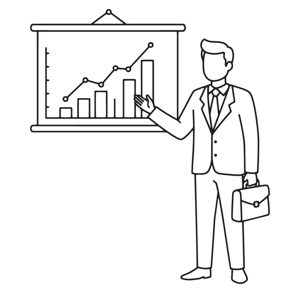 Business professional presenting financial data and growth on a chart using visual analysis. Pro Vector