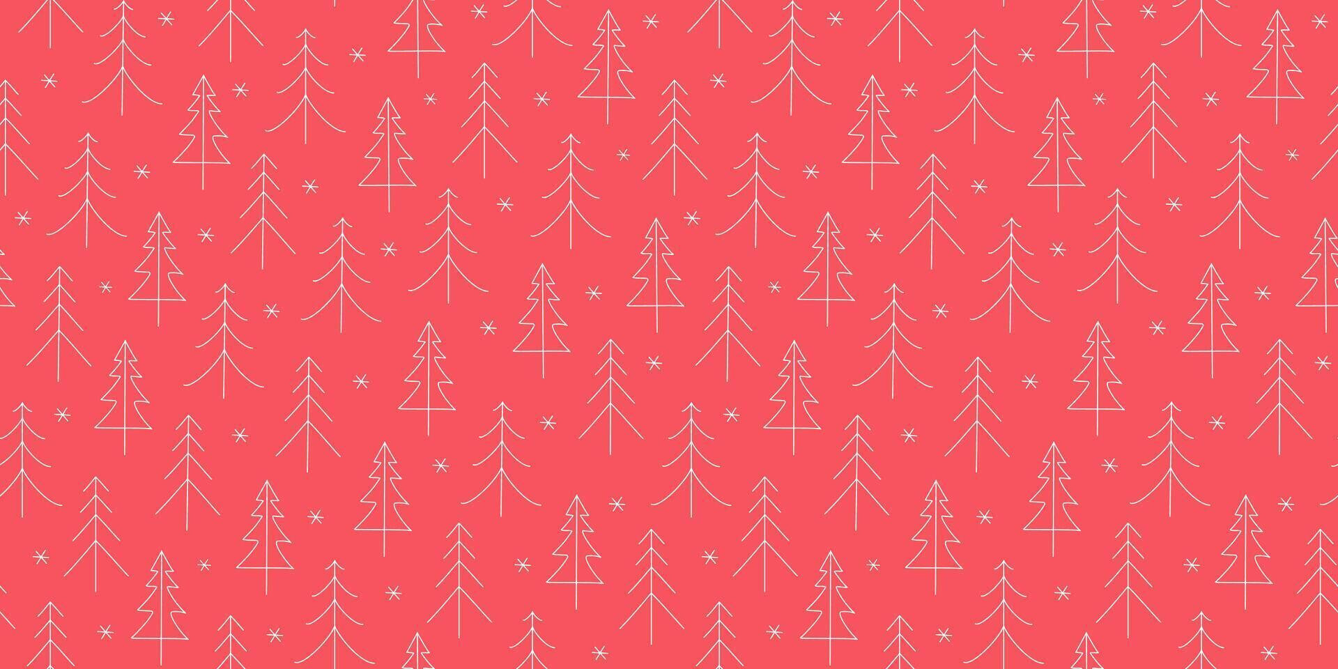 A simple winter pattern. Forest, fir trees, snowflakes. Hand-drawn line icons of fir trees. Drawings, doodles. Seamless New Year's, Christmas background. Suitable for any prints on fabric or paper. Pro Vector