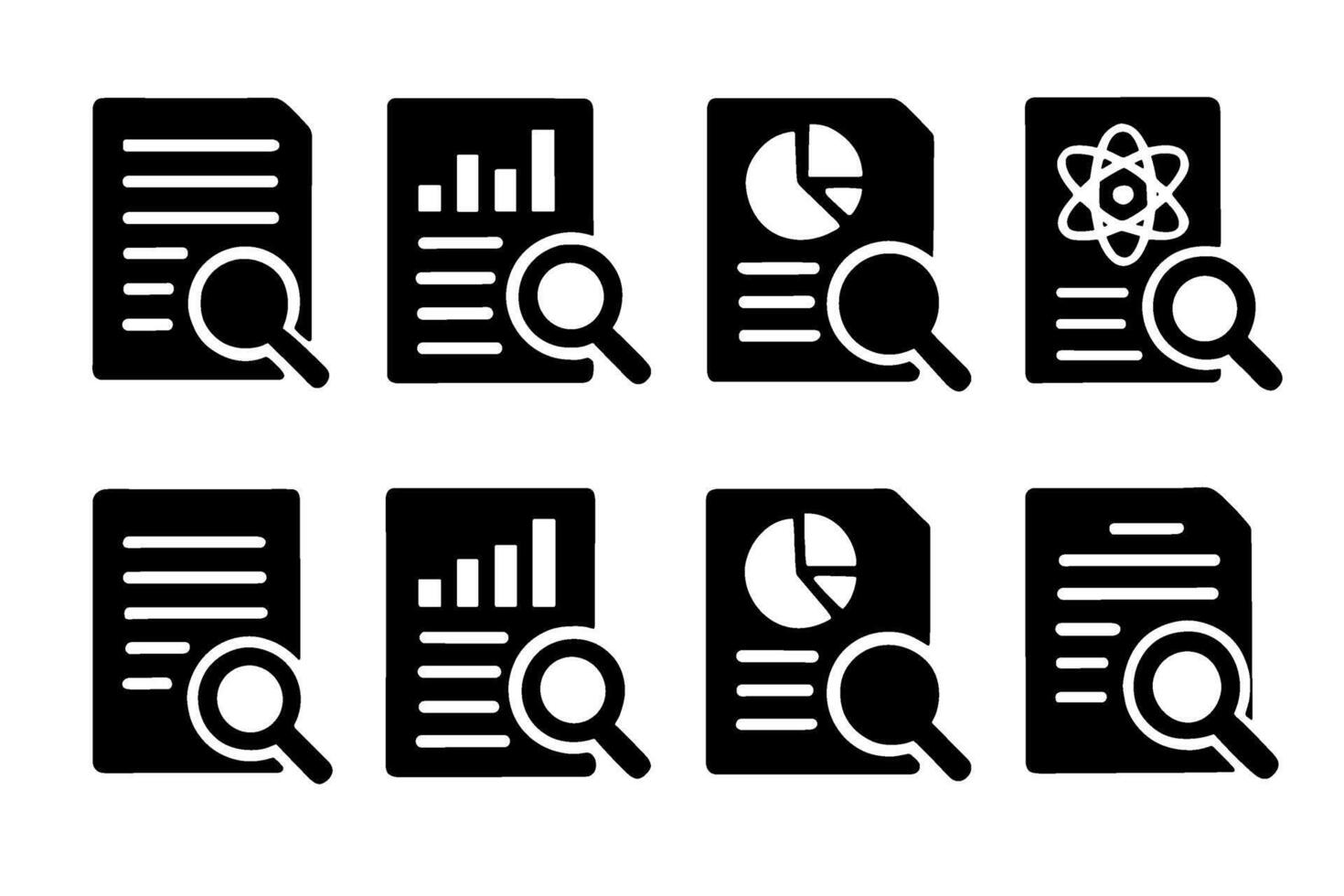 Research and data analysis icon set. black symbols of document review Pro Vector