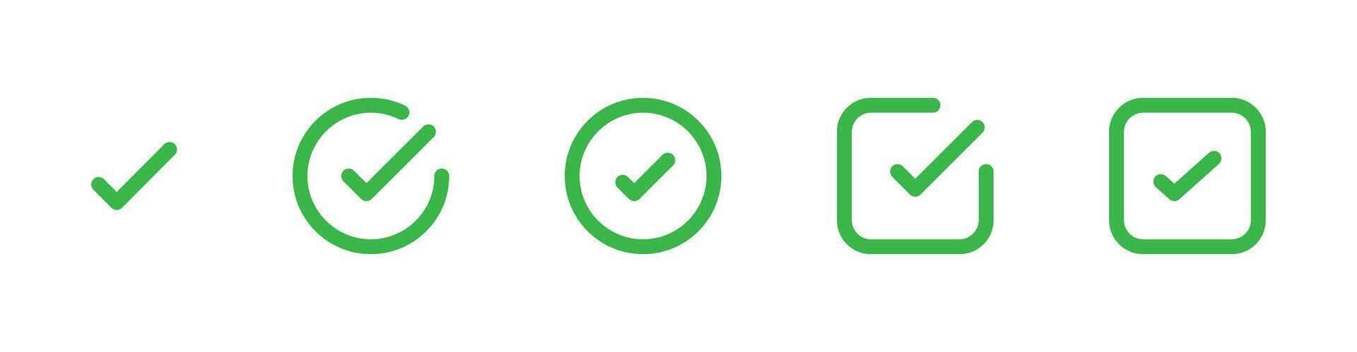 Checkmark green outline style with various shapes icon set Pro Vector