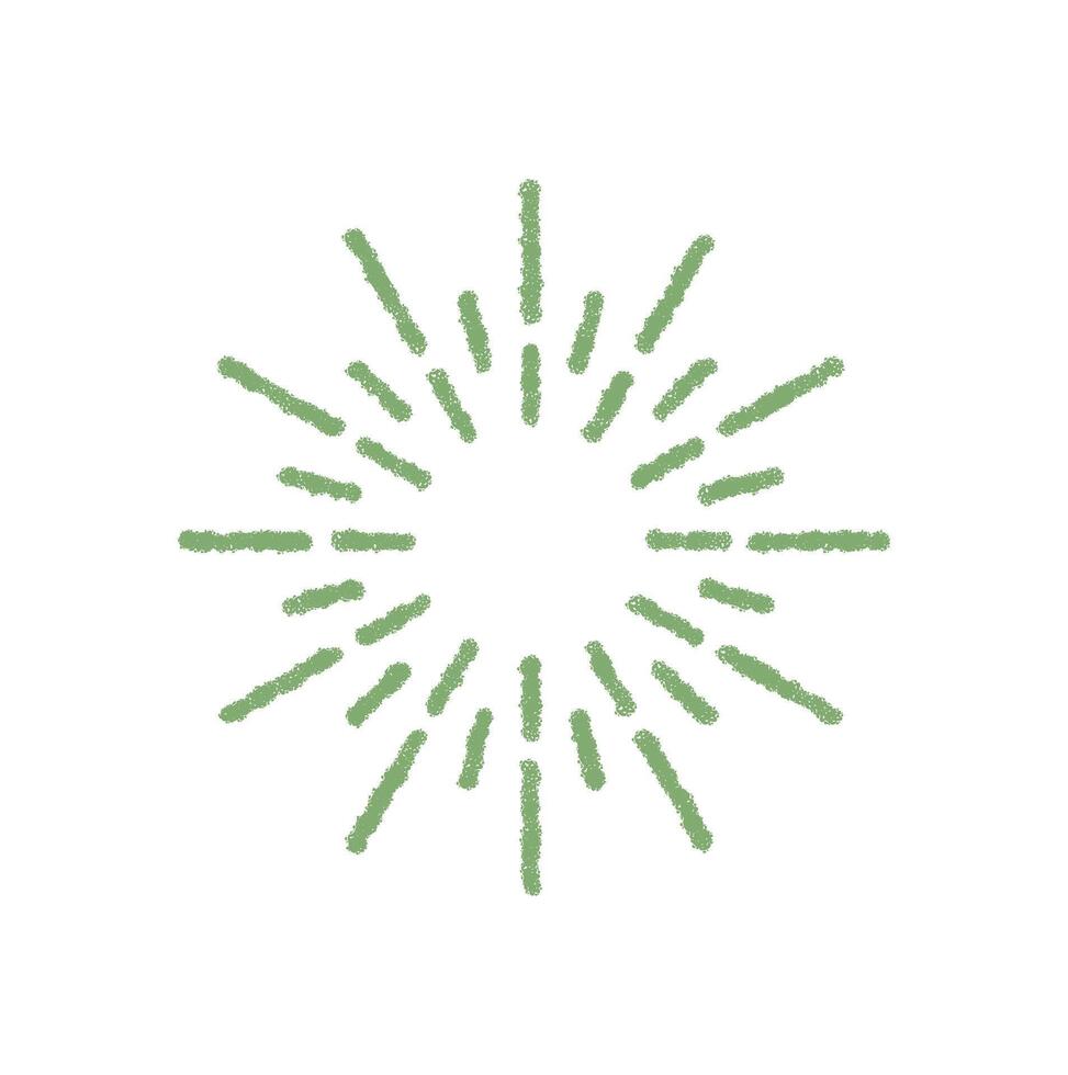Green crayon firecracker icon with round burst and spark detail. Firework explosion and festive symbol shine in holiday graphic. Dynamic party concept, unique element for celebration themes. Pro Vector