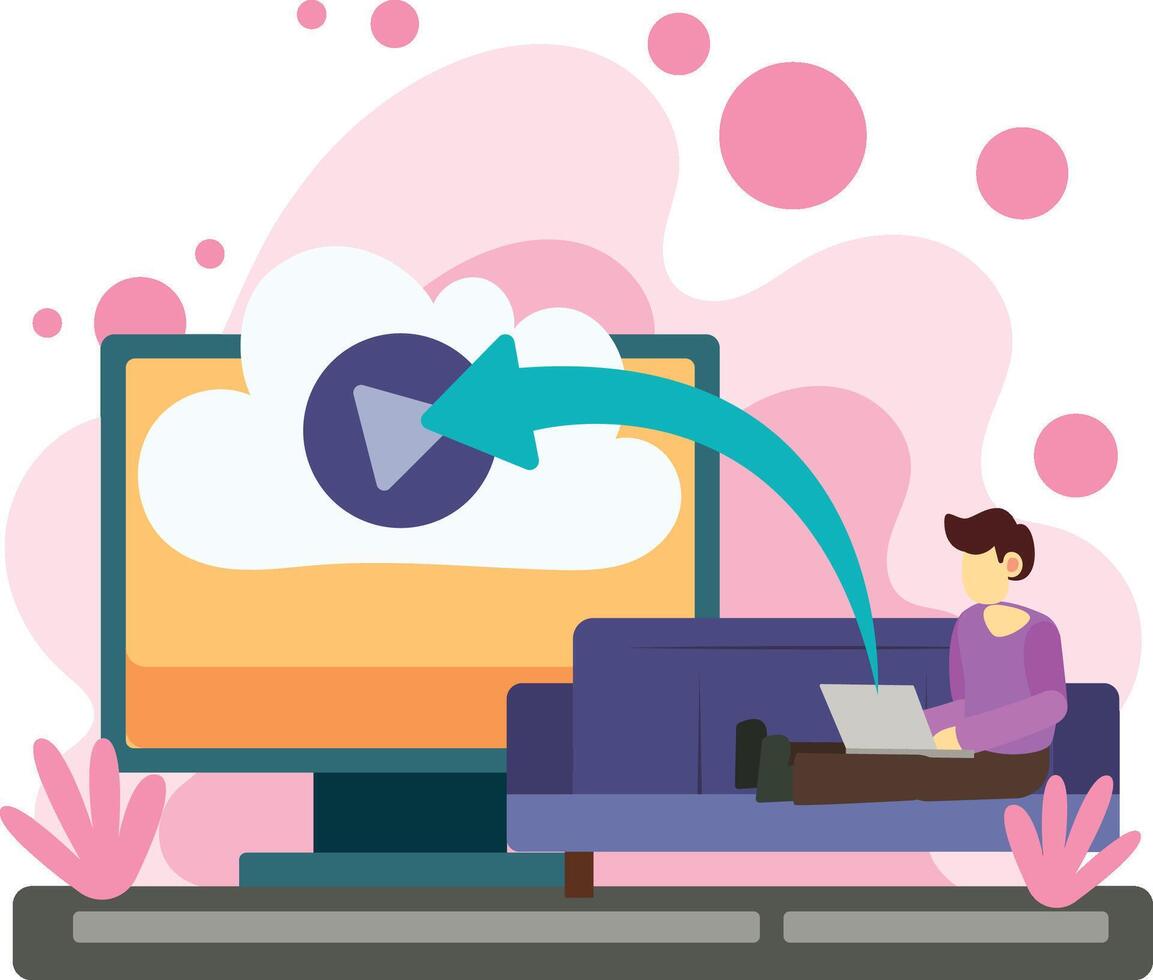 Man uploading data to cloud storage illustration Pro Vector