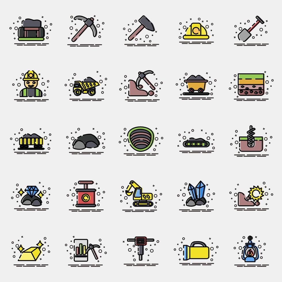 Icon set of mining. Gold mining elements. Icon in MBE style. vector