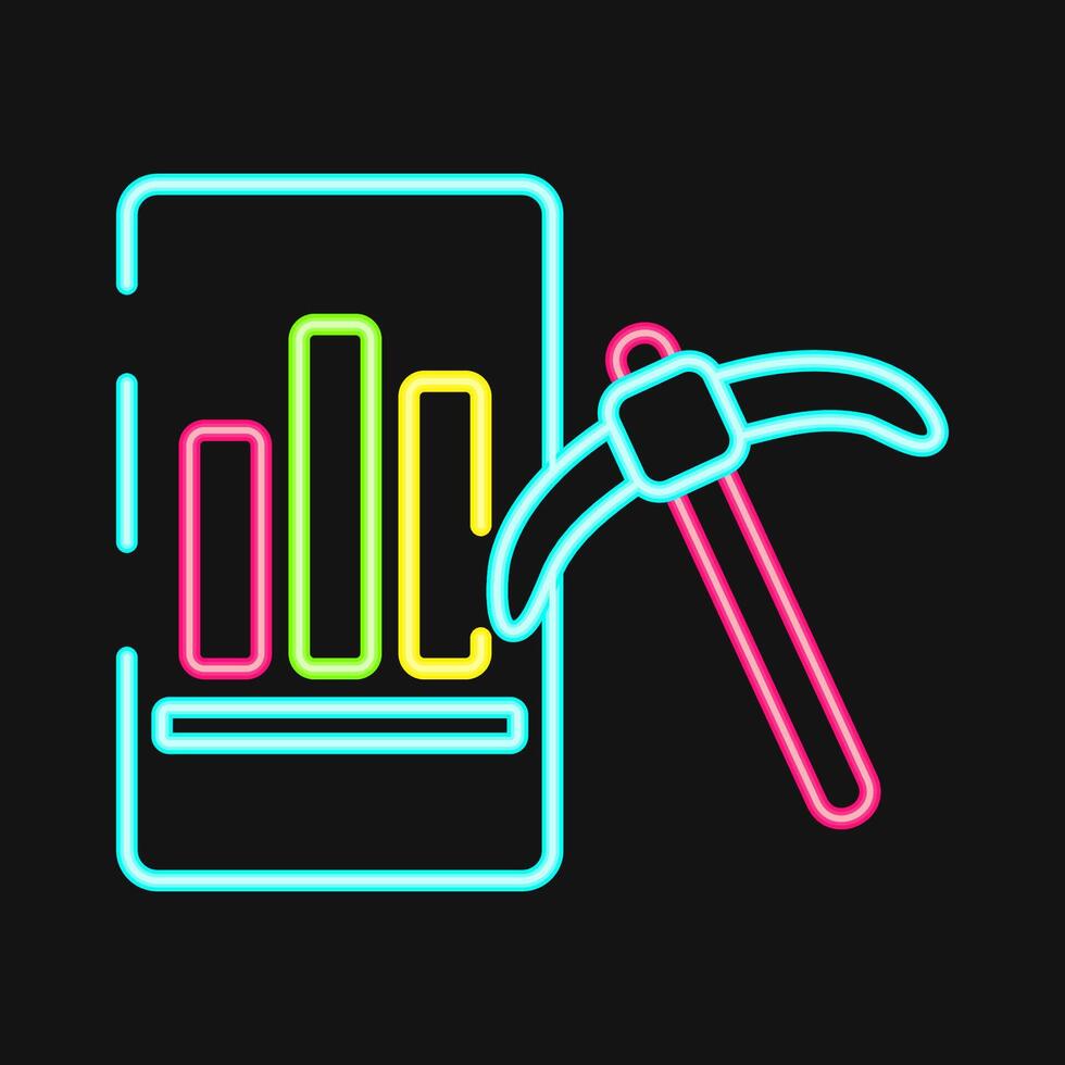 Icon data mining. Gold mining elements. Icon in neon style. Pro Vector