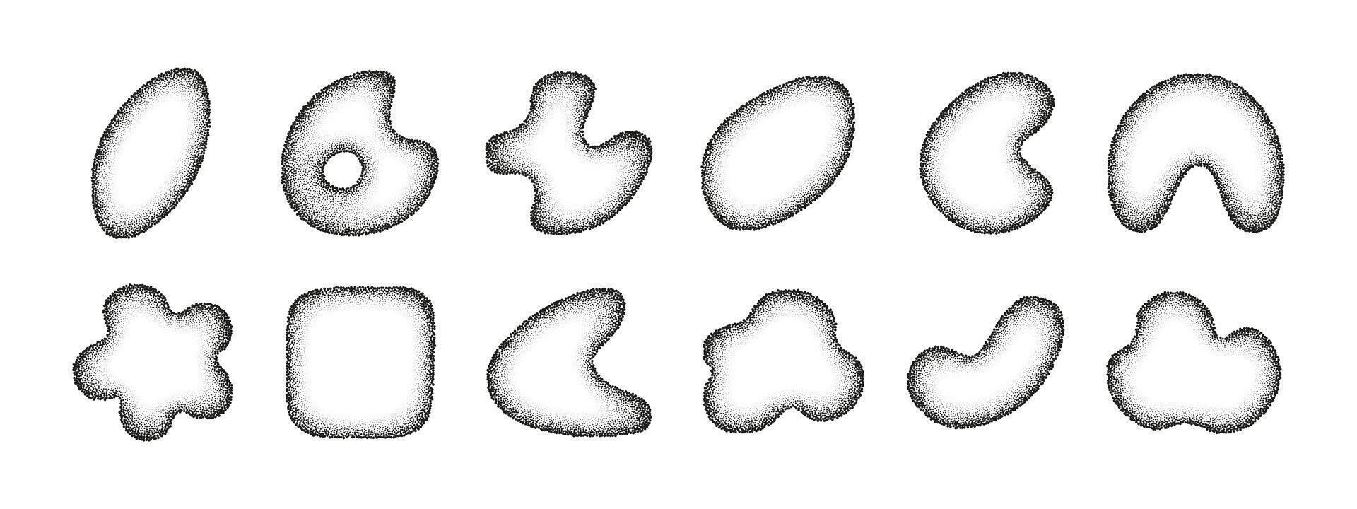 Abstract organic blob shapes with grain texture. Minimal liquid forms for modern design, posters, web, backgrounds and creative projects. Isolated elements Pro Vector