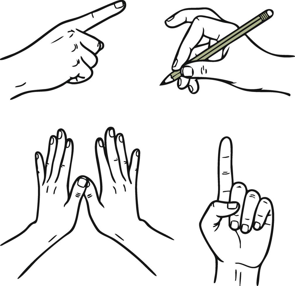 Line Art Hand Action Vectors Set Pointing Writing Clapping and Index Finger Gestures Pro Vector