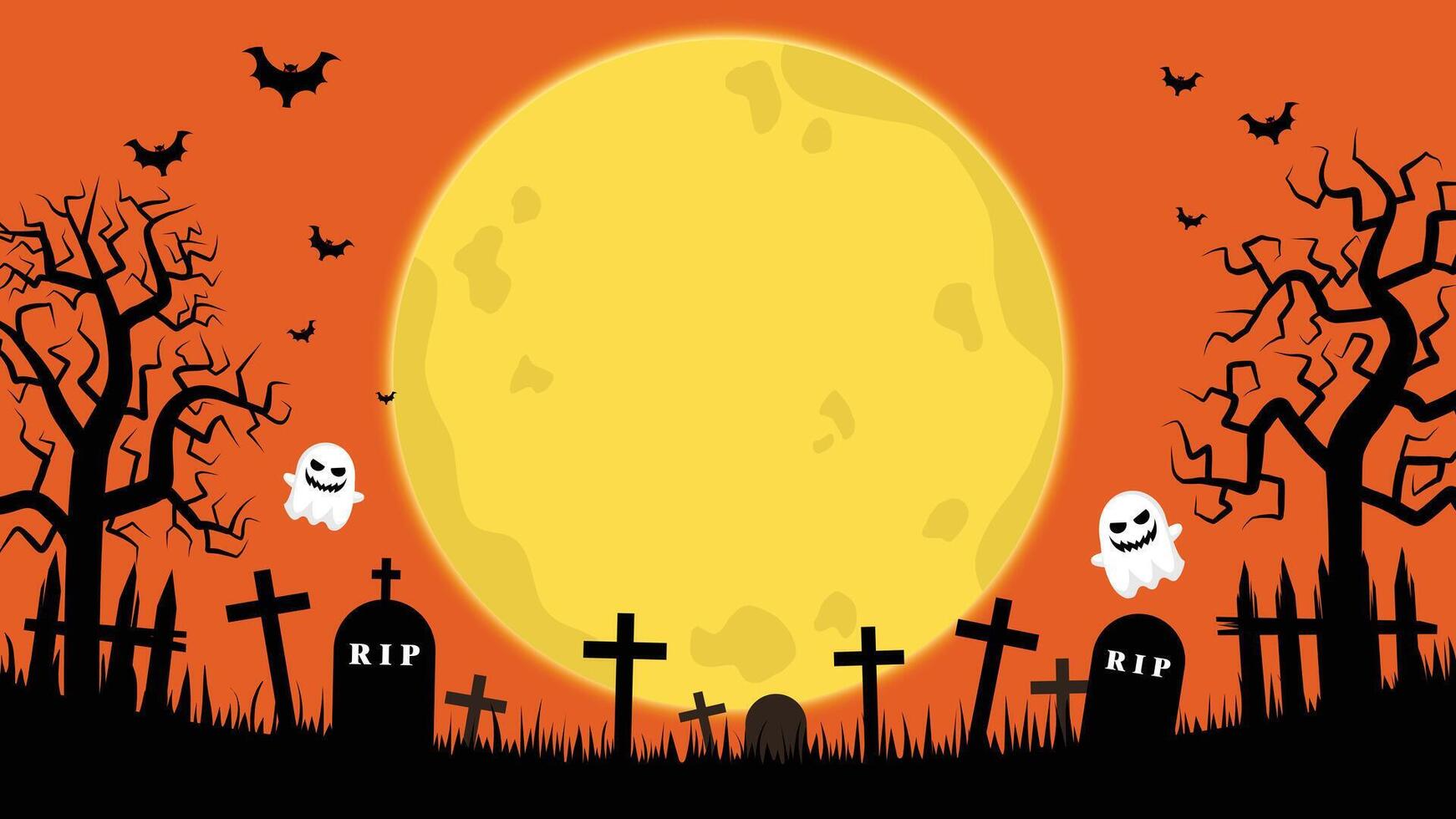 Haunted Graveyard And Dead Tree With Full Moon In The Background Pro Vector