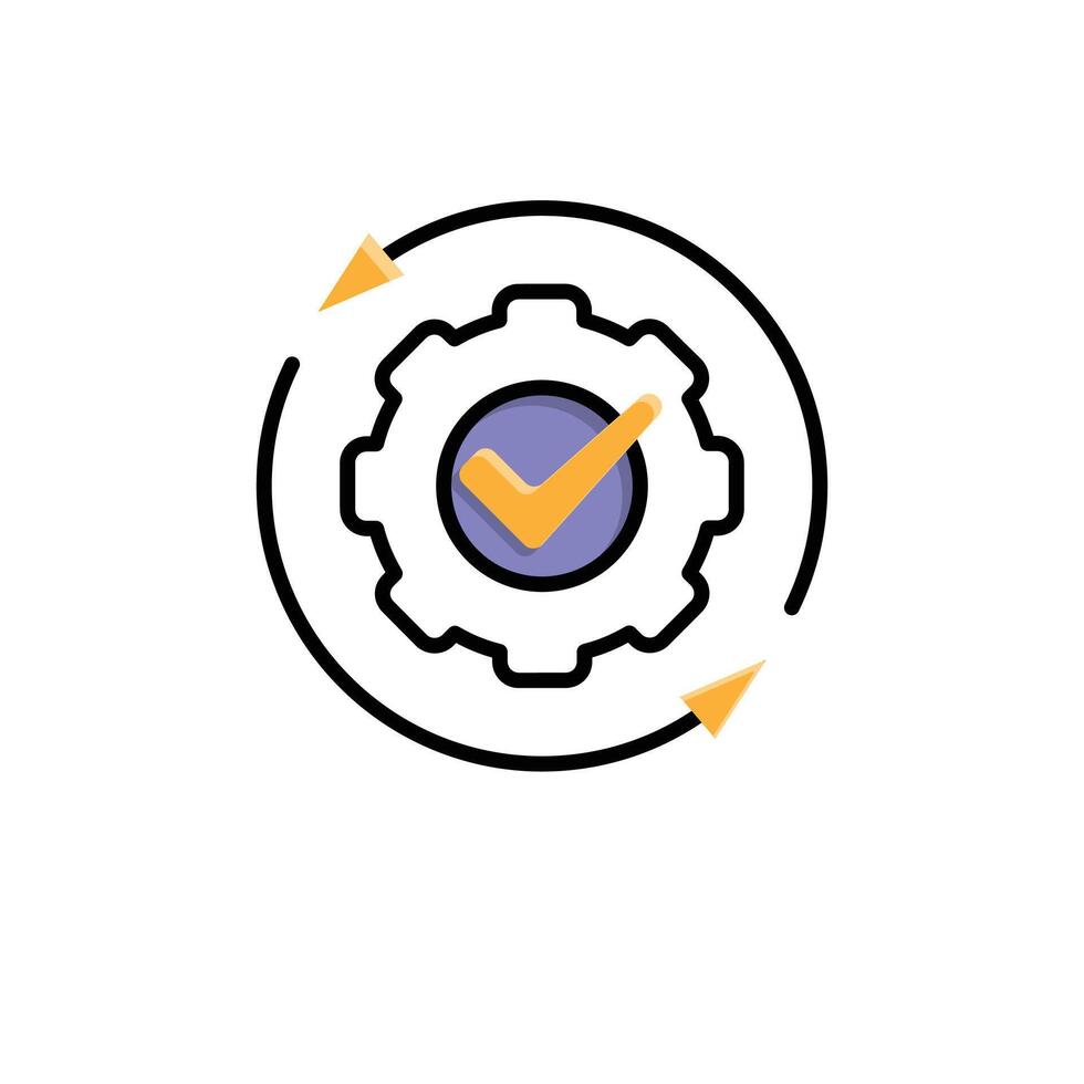 Automation icon. AI. Gear with a check mark and two circular arrows. automatic, manager, web. Mixed design style. Pro Vector