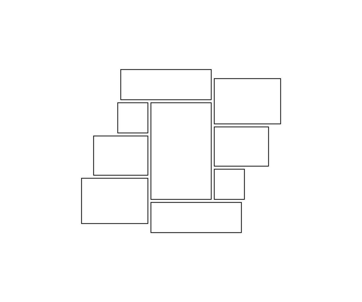 Frame collage from square rectangle shape for photo, image template line set. Mood board layout, background. Gallery grid, border illustration Pro Vector