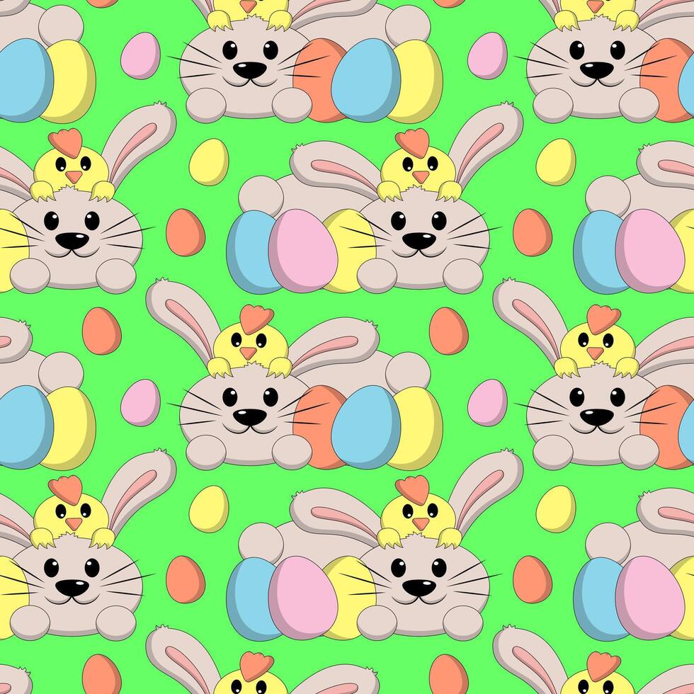 Seamless pattern with Cute Easter Rabbit and Chicken with egg Pro Vector