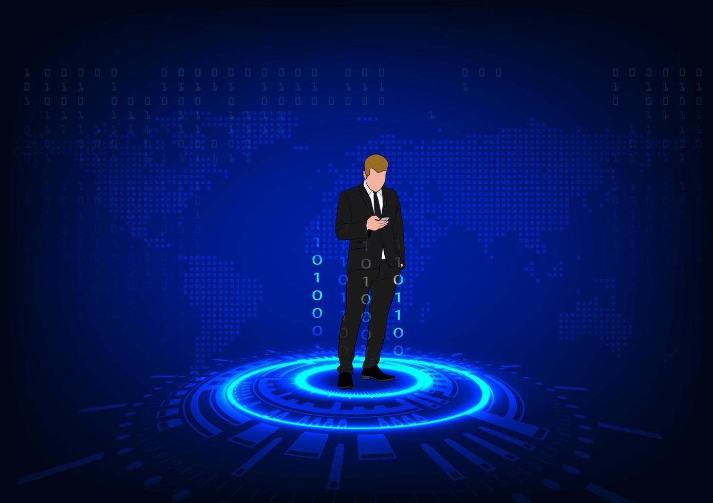 graphics drawing business man hold smartphone use connection communication for cloud computing Pro Vector