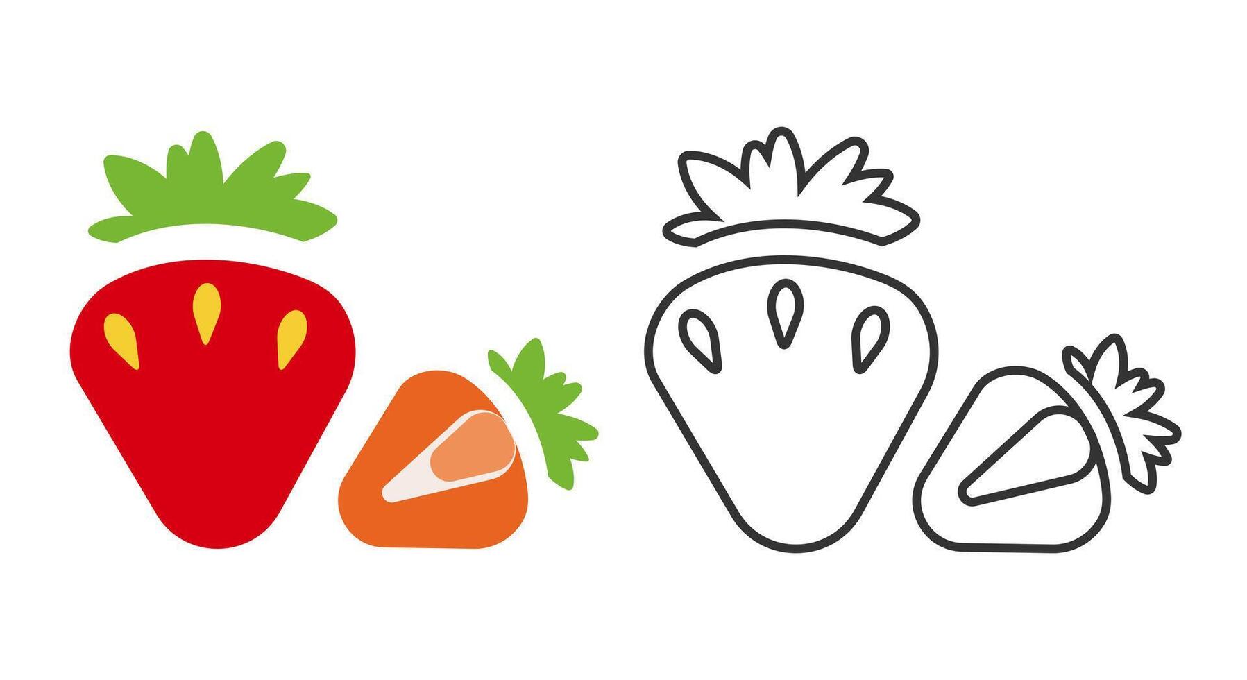 This design showcases two strawberry line icons, one in vibrant red and the other in a clean outline format. Perfect for fruit-themed projects and graphical representation. Pro Vector