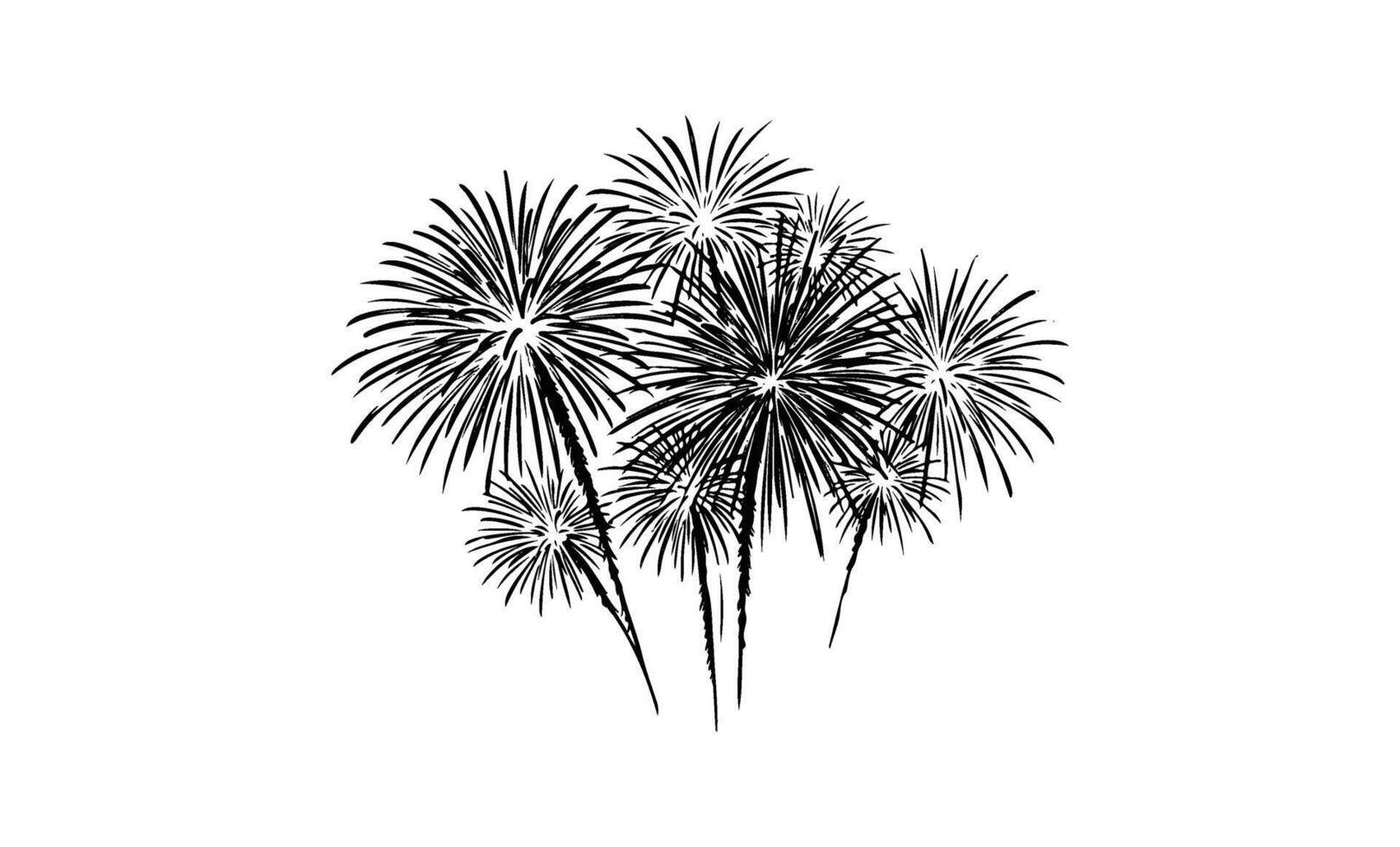 Monochrome fireworks display exploding in the night sky with starburst patterns vector
