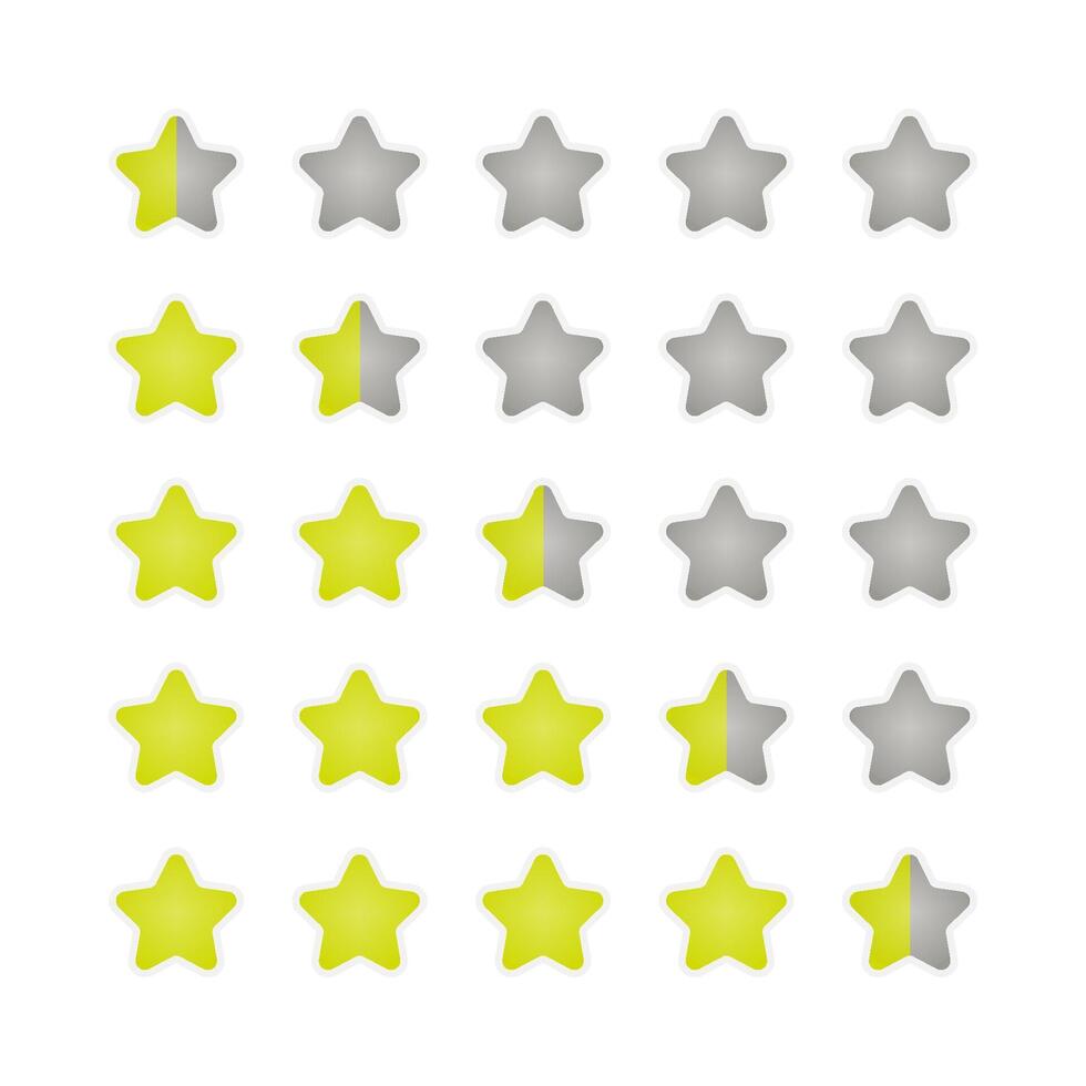 Set of Yellow Gradient with White Border Rating Star icon for Game from 0.5 to 4.5 Stars Pro Vector