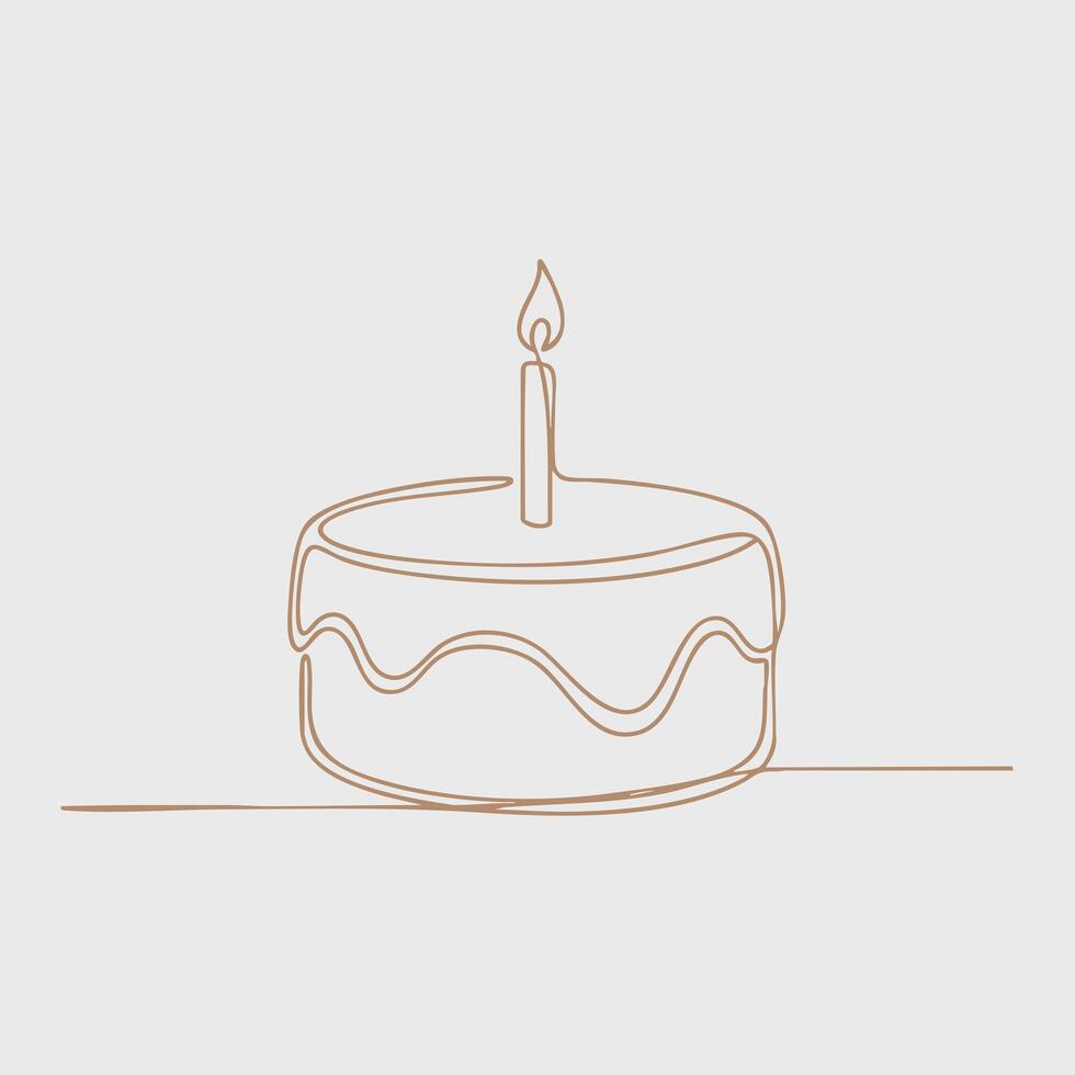 Elegant single-line drawing of a birthday cake with a lit candle on top, minimalistic style with clean lines and simple design Pro Vector