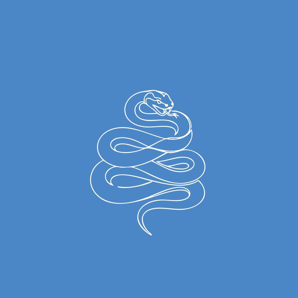 Minimalist Line Drawing of a Coiled Snake with a Menacing Expression on a Solid Blue Pro Vector