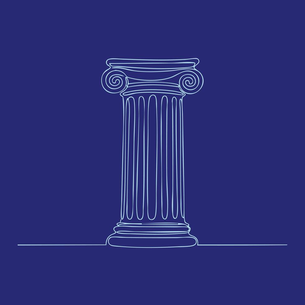 Minimalist line drawing of a classical Ionic column with scroll-shaped capitals on a dark blue Pro Vector