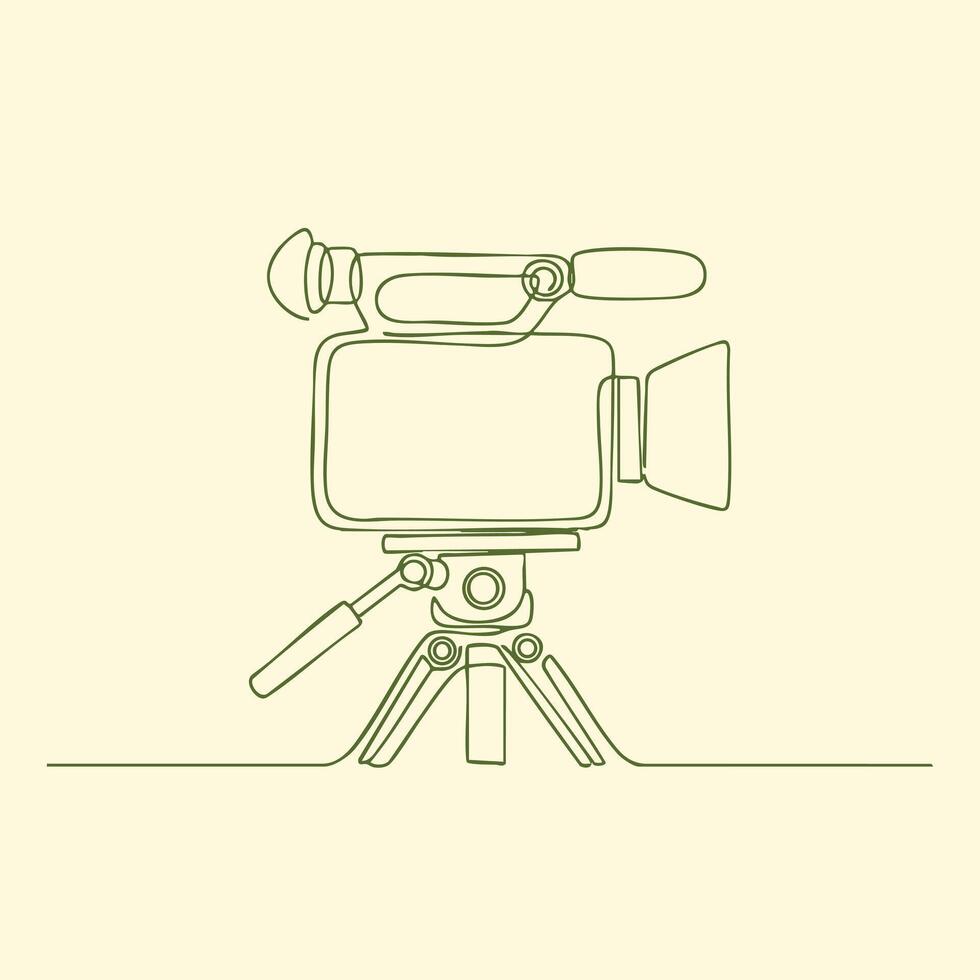 Minimalist line drawing of a professional camera mounted on a tripod with a handle and viewfinder, on a plain Pro Vector