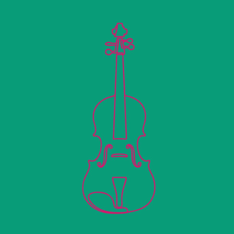 Minimalist Line Drawing of a Violin with Elegant Curves and Simplified Design on a Solid Pro Vector
