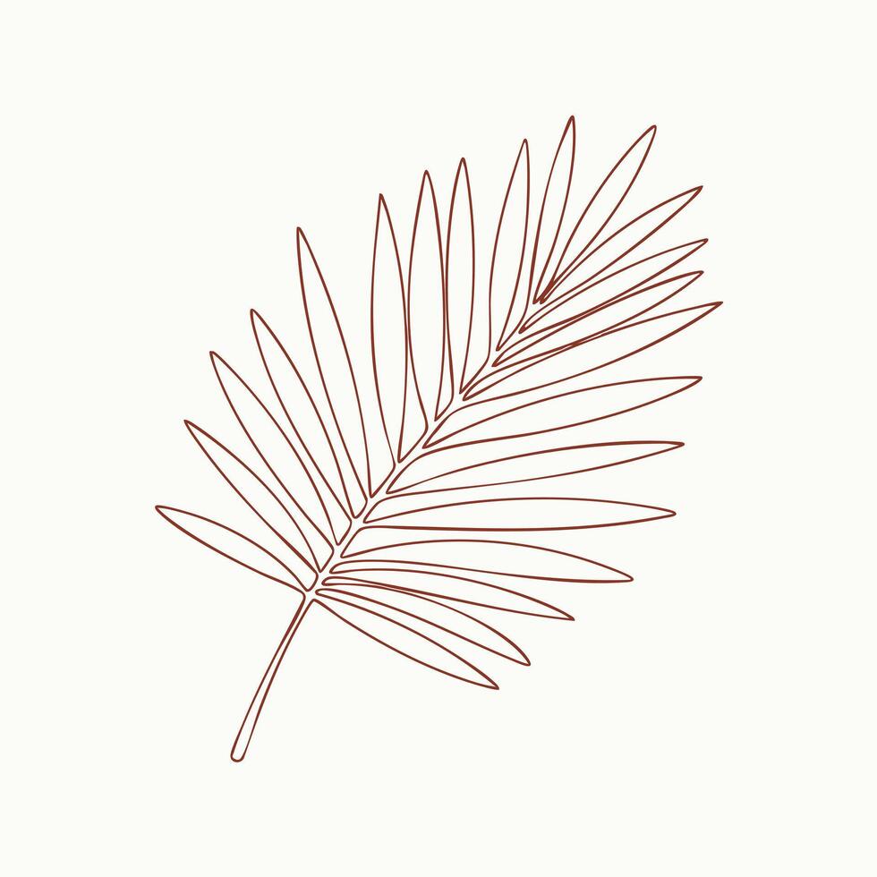 Minimalist Line Drawing of a Single Palm Leaf with Fine Details and Elegant Curves on a Light Pro Vector
