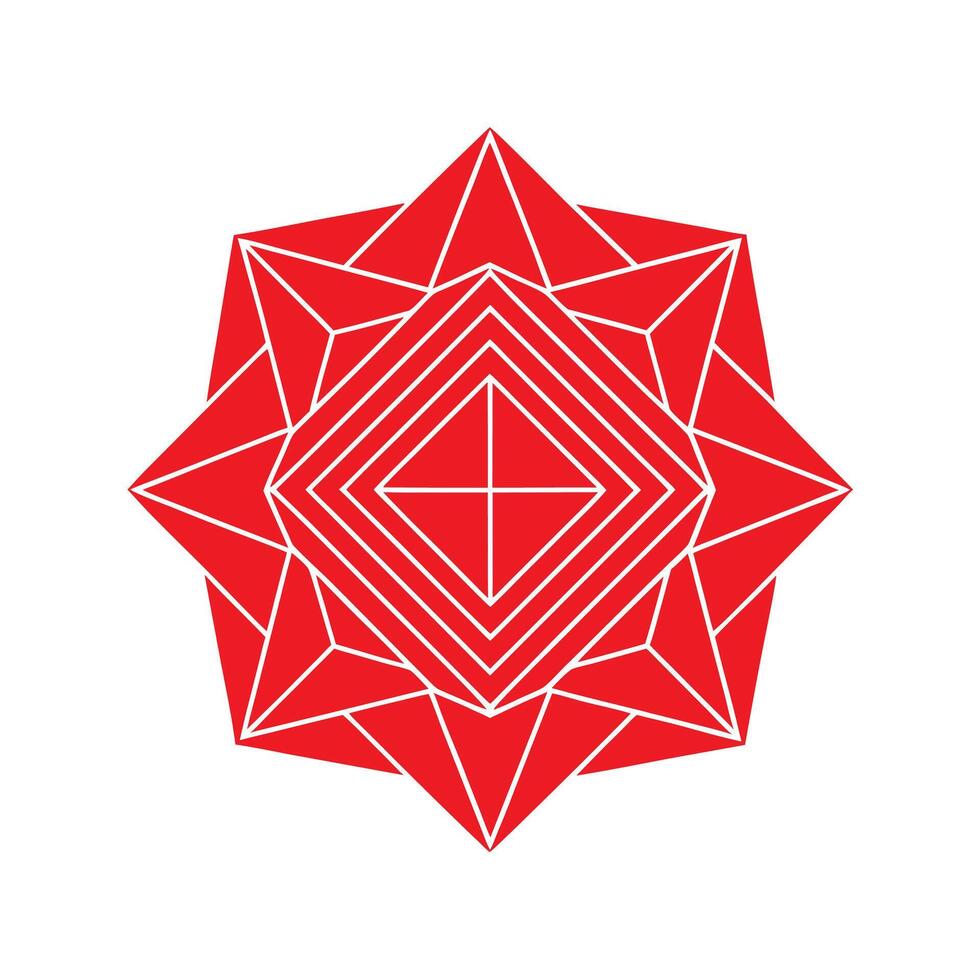 Red Geometric Starburst Pattern with Concentric Squares on White Background symmetrical vector