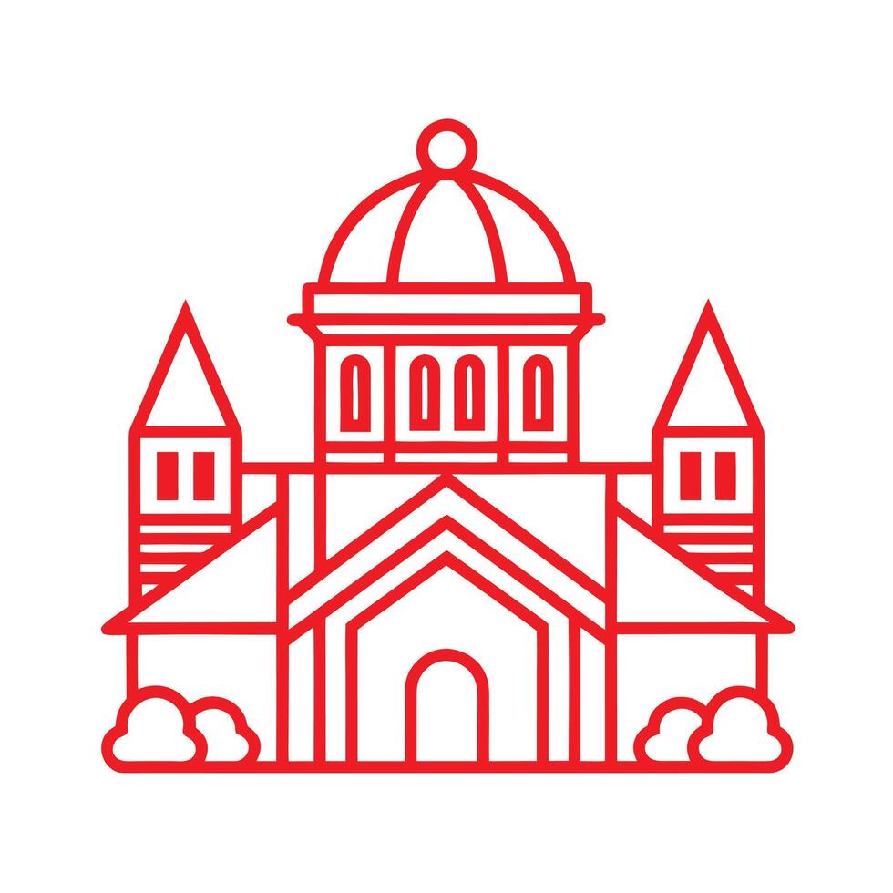 Red Outline Icon of a Grand Building with a Dome and Towers on a White Background architecture vector