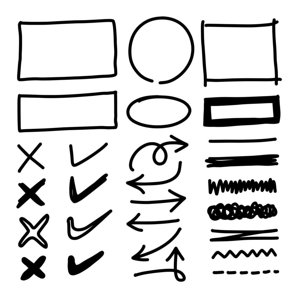Set of hand drawn elements for selecting text.Hand drawn frames, circle and arrows on white background Pro Vector