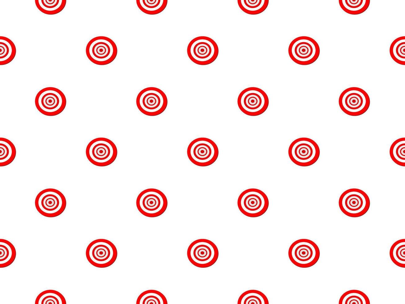 Seamless grid pattern of red concentric targets on white background, perfect for themes of precision, repetition, focus, and modern geometric surface design. Pro Vector